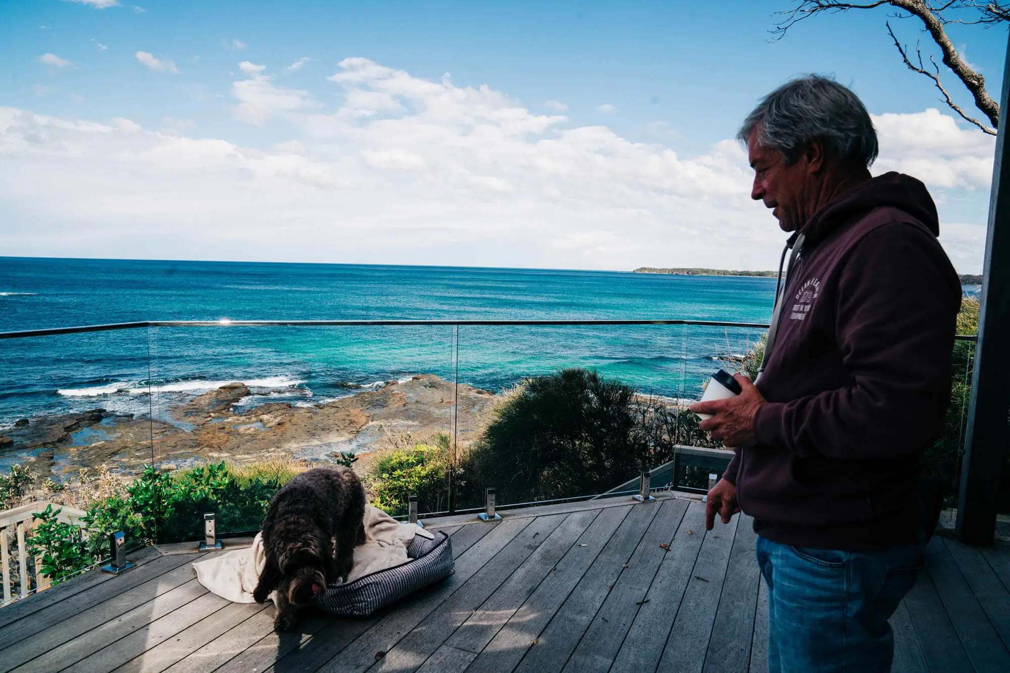 После сёрф-сессии владелец O&E обещал показать нам, почему он остался жить в Сассекс Инлет. Сейчас Брайfн живёт в доме по соседству с тем, где он вырос. Его дом сдержанно-элегантен, интерьер пропитан духом океана. Я бывал в множестве мест с шикарным видом, но вид из дома Брайана действительно сносшибательный. Из каждой комнаты виднеются несколько качественных сёрф-спотов, расположенных между южной оконечностью Джервис Бэй на севере и Бендалонгом на юге.
