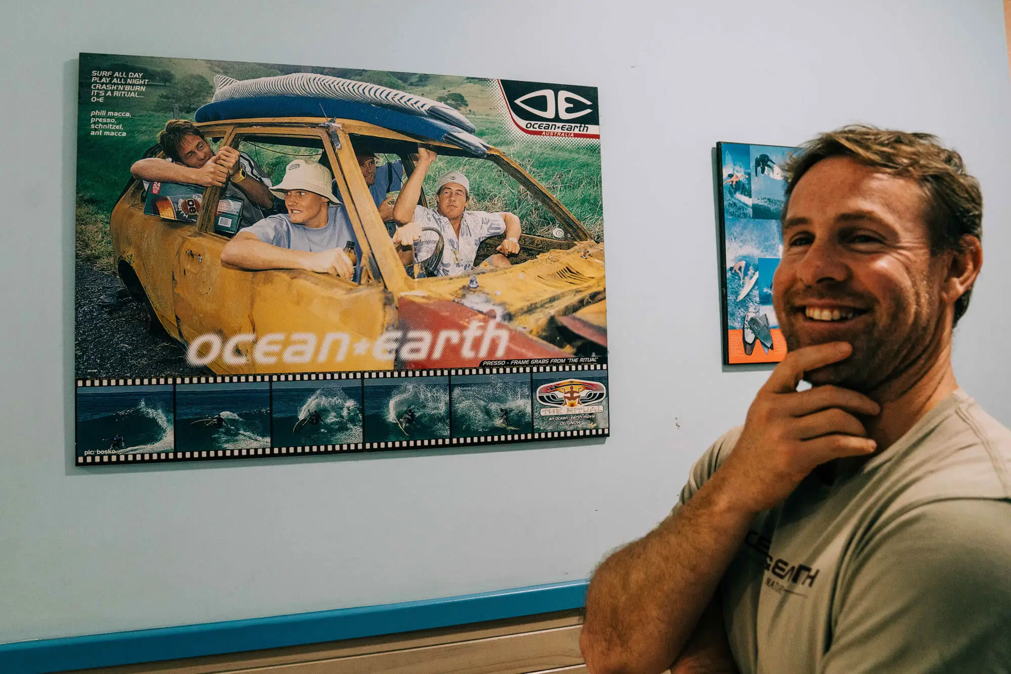 Кстати, говоря о хороших сёрферах, у компании новый директор. Его зовут Фил Макдональд. Cёрферы определённого возраста должны помнить его как сёрфера номер пять в мире. Правда, “новый”, в данном случае, не совсем точное определение, ведь имя Фила ассоциируется с O&E с тех пор, как ему стукнуло 13. Брайан буквально взрастил его. Чуть позже владелец признался мне, что ослабить контроль над своим детищем гораздо проще, если твой новый директор рос вместе с компанией. А ещё Брайан гордится, что его компания остаётся одной из немногих независимых в сёрф-индустрии.
