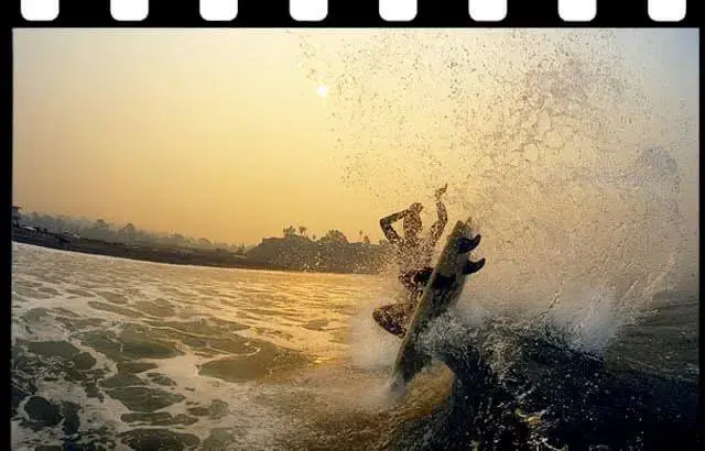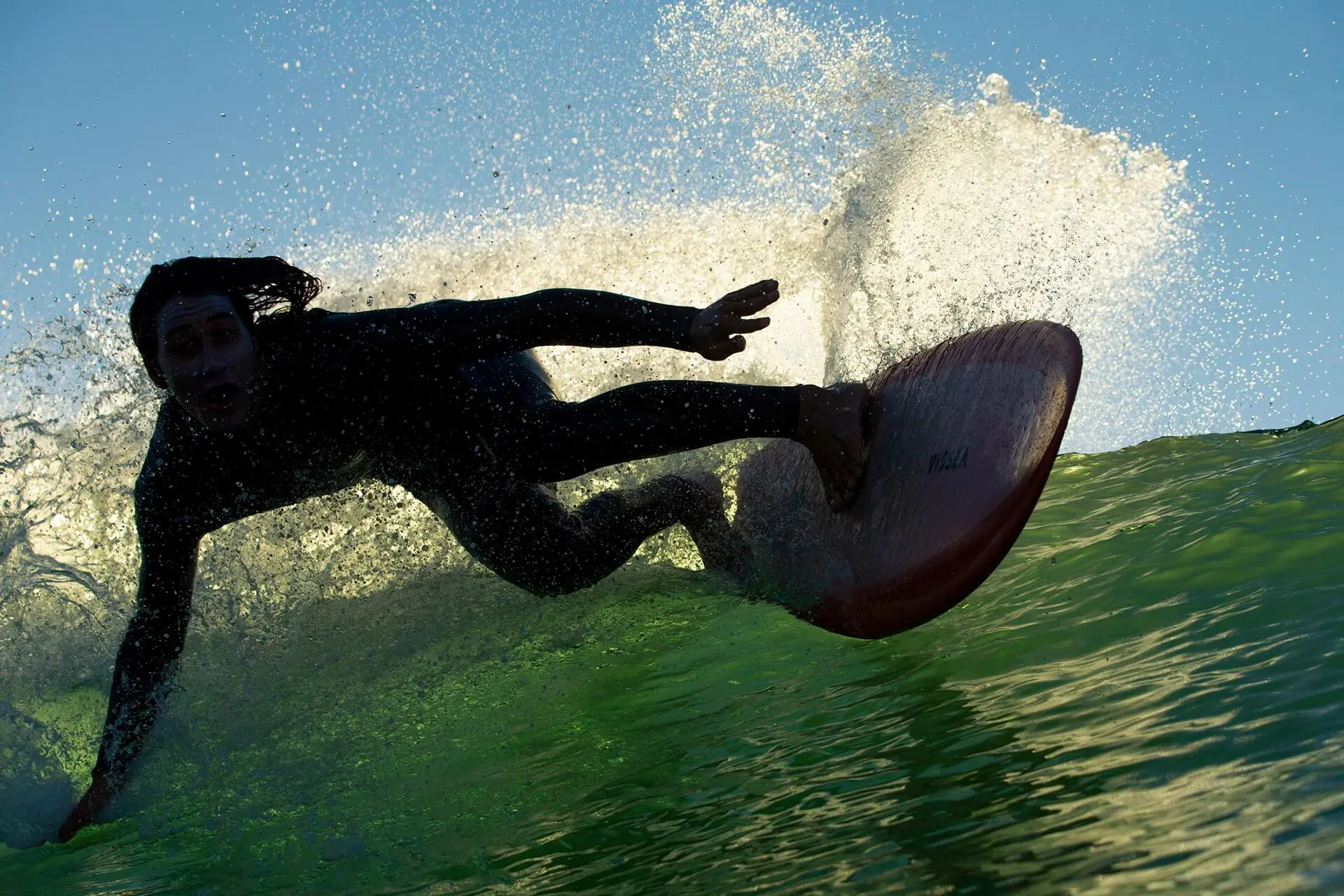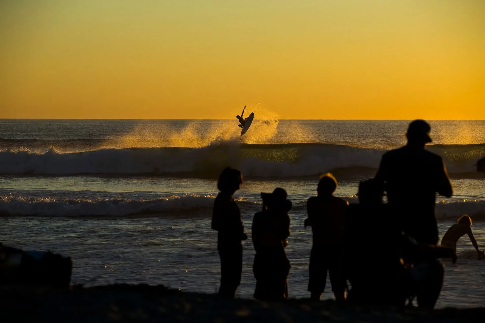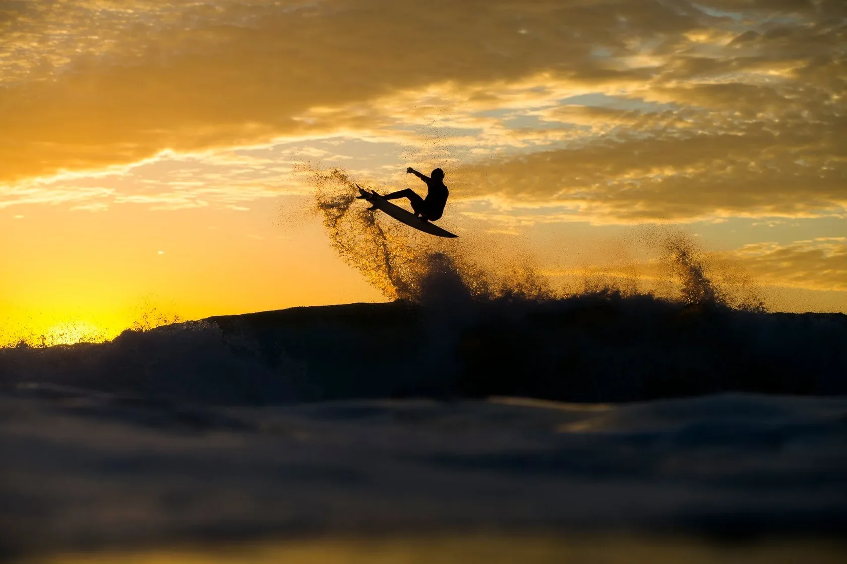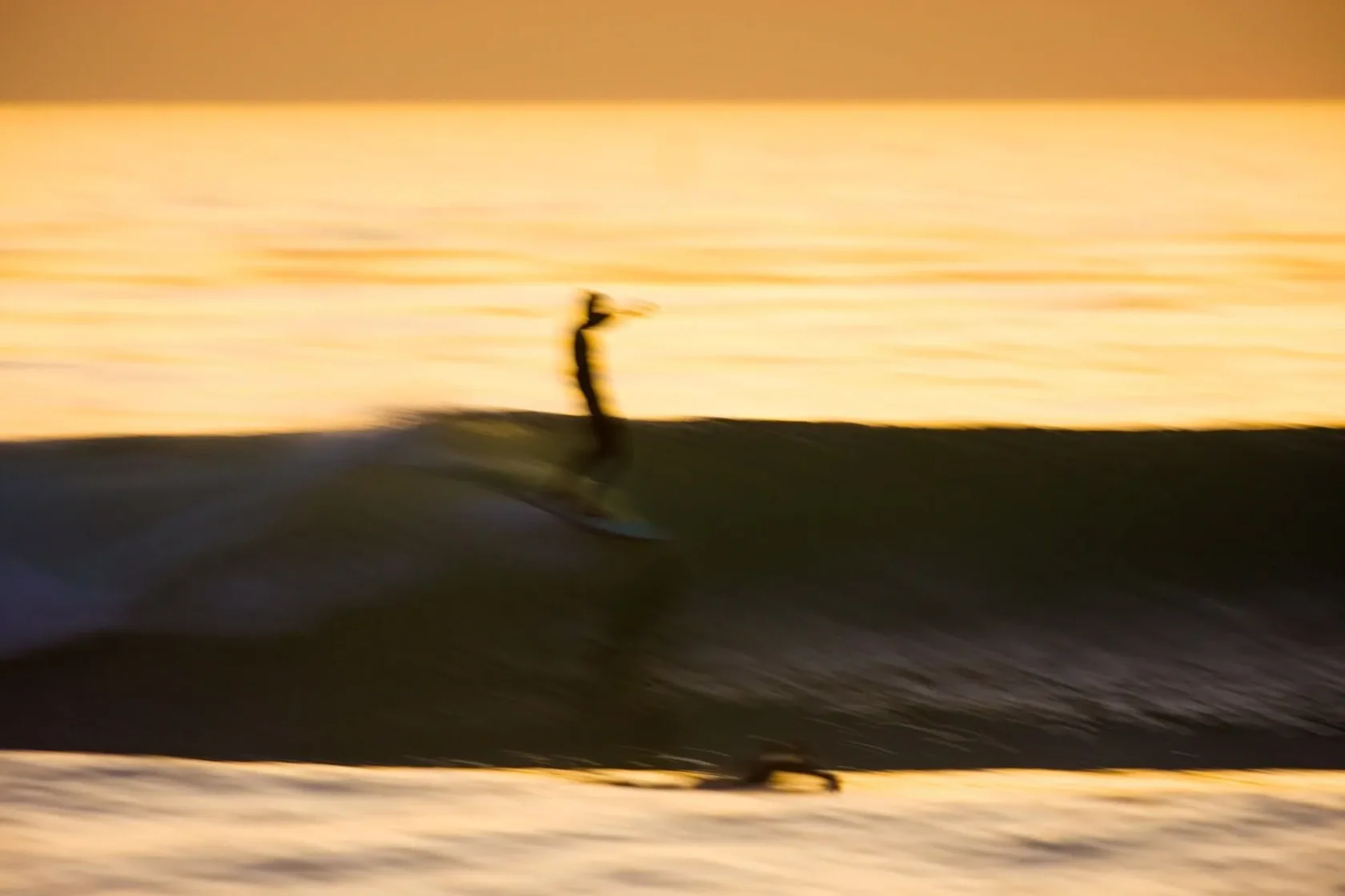 “Иногда, когда дело идёт к красивому закату и волны выглядят неплохо, в течение часа я сижу с камерой, чтобы увидеть, что произойдёт. Это Дэвид Сухадольник. Он всегда катается на Сисайде на самых разных досках — от хай-перфоманс шортбордов до фишей.”
