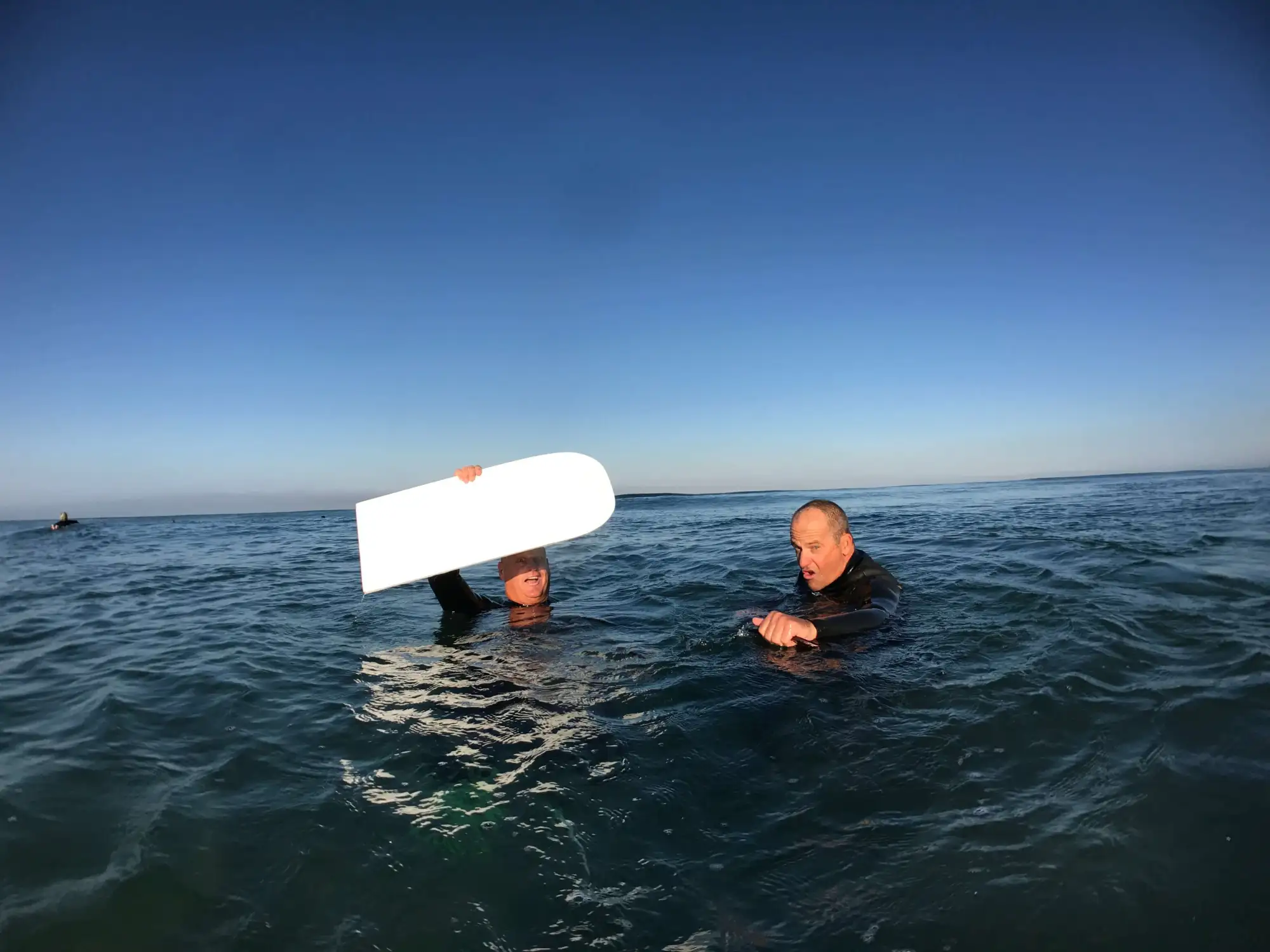 “Это Расти и Ронни, и эти парни серфят на Сисайде целую вечность. Они наиболее сёрф-заряженные люди, которых я встречал. Они ездят на самых разных досках, включая самодельные бодиборды, доски для маленьких волн с обрубленным хвостом и традиционные шортборды. В этот день волны были крошечными и я дико мёрз, но они плавали там на своих бодибордах и ловили трубы-малютки, поэтому я решил заплыть.”