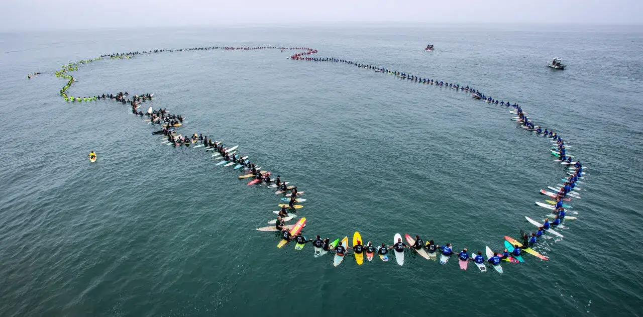 Рекорды в сёрфинге. Самая длинная линия из сёрфбордов