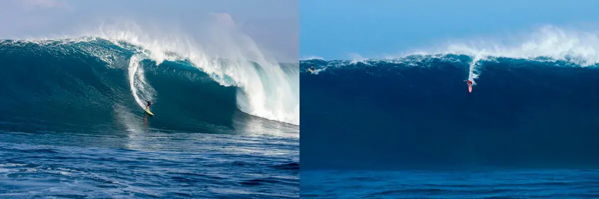 У мужчин рекордсменом является Аарон Голд с проездом по волне размером 63 фута (19.2 м) на том же споте.