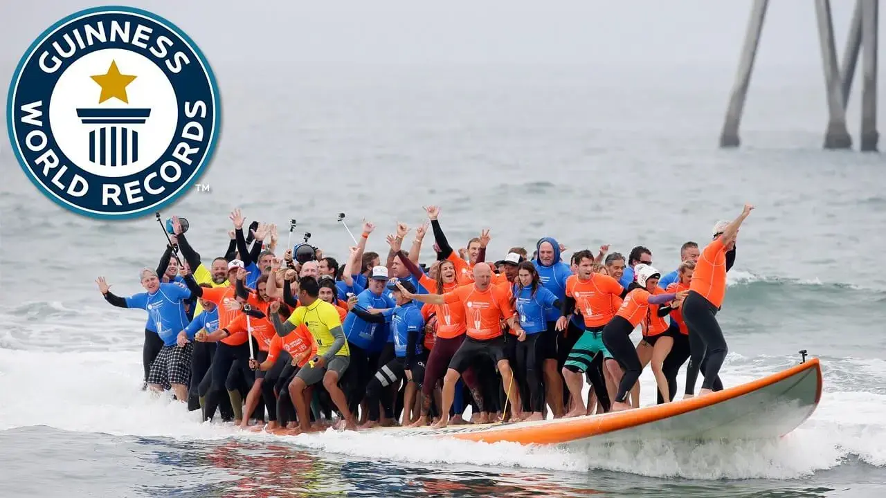 НАИБОЛЬШЕЕ КОЛИЧЕСТВО ЛЮДЕЙ НА ОДНОМ СЁРФБОРДЕ НА ВОЛНЕ