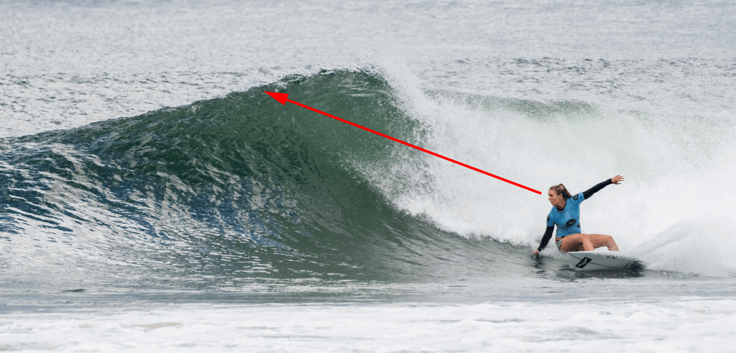 Передняя рука, как и направление взгляда — это твой руль. Направь эту руку вдоль волны и будешь ехать туда, куда хочешь ты сам, а не туда, куда ведёт тебя доска.